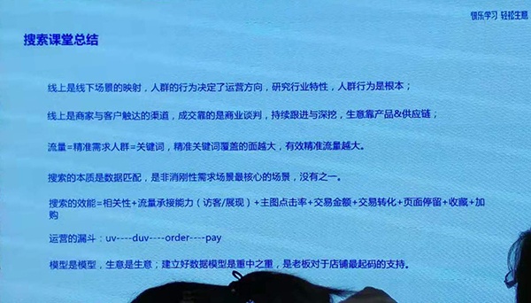 本次學習,對我們幫助最大的課程是《搜索之道》和《客戶運營提升轉化》。后期的工作過程中,我們要努力學會分析數據、選擇合適的關鍵詞、做好店鋪的排版和產品信息的主圖詳情頁等等,以提高我們產品的展現和點擊,最終目的是提高點擊轉化率和支付轉化率!